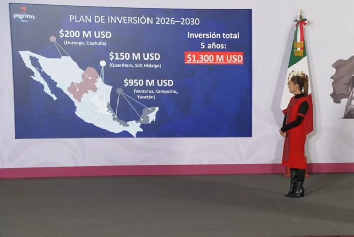 La empresa Pilgrim’s México ha anunciado un ambicioso plan estratégico que contempla una inversión de 1,300 millones de dólares entre 2025 y 2030.